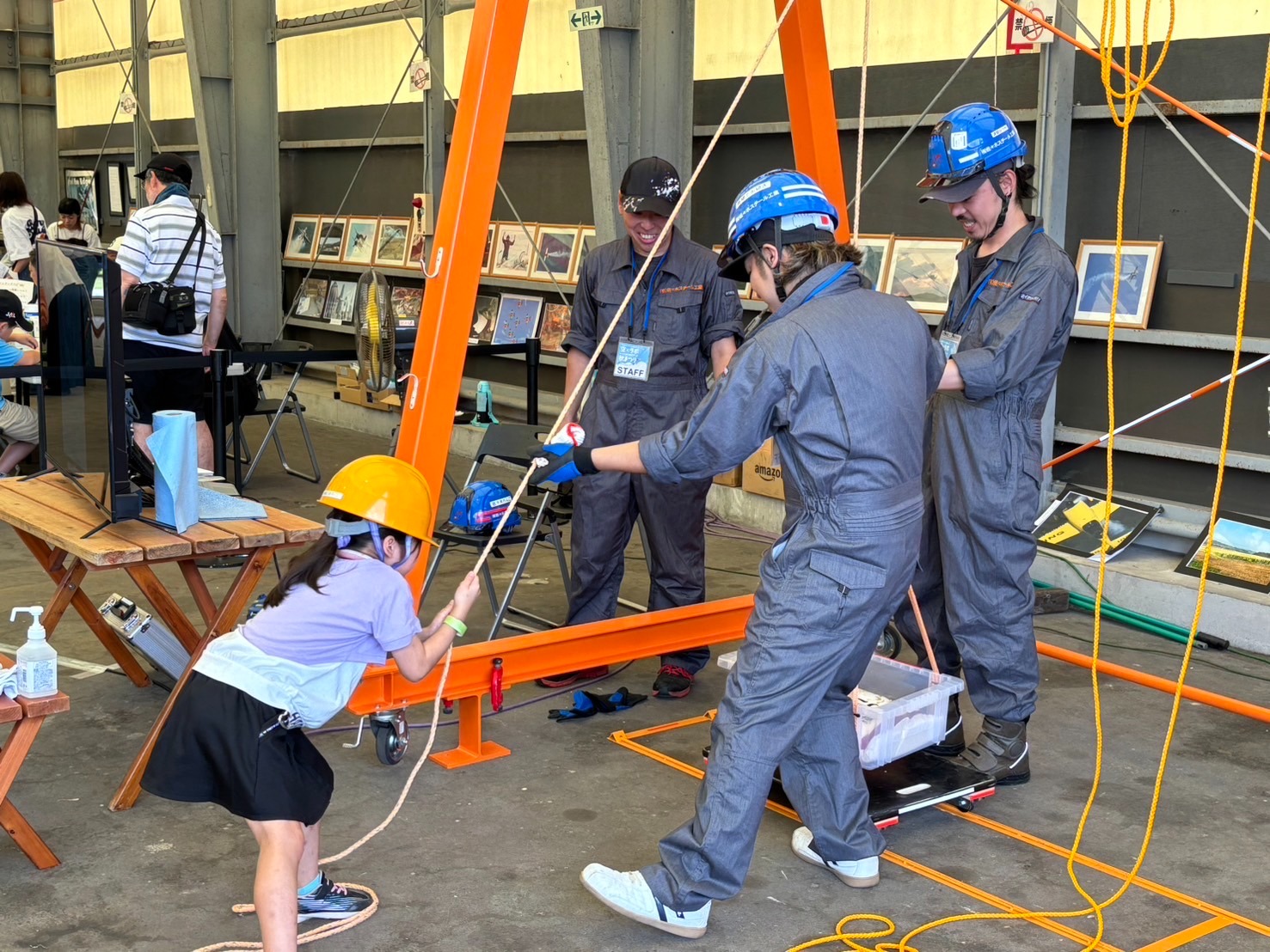 2024年 9 月 7 日 (土) 空×ラボ in スカイパークにて 秋祭りを行いました。 『滑車』 の原理、仕組みを講習いたしました。 定滑車は力の方向を変える 動滑車は力の半分・・・など 引っ張る量は2倍・・3倍となる 電動はボタン一つで吊り上下可能 子供たちの笑顔を見ることができ、次世代の若者にものづくりの楽しさ、大人が本気で作った装置に喜んでおりました!